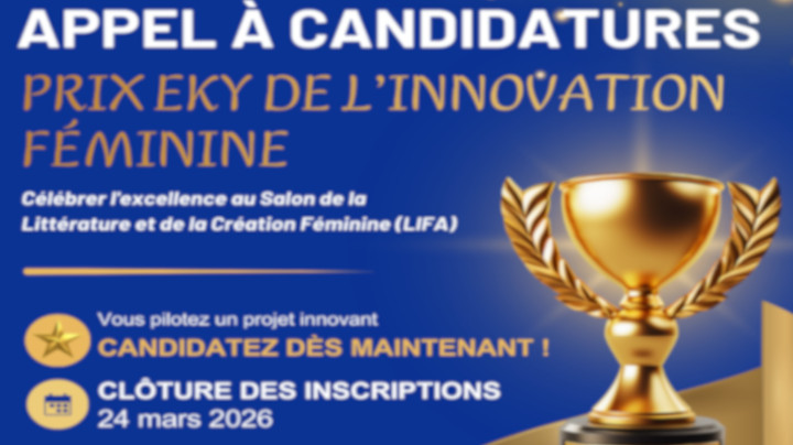 Dans le cadre du Salon International de la Littérature et de la Création Féminine (LIFA 2026), nous avons le plaisir de vous informer de l’ouverture des candidatures au Prix EKY de l’Innovation Féminine.